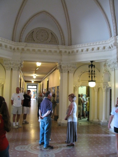 In August of 2011 we were traveling through Wisconsin and couldn't pass up the chance for a visit to the Yerkes Observatory in Williams Bay. It is the home of the world's largest refractor and the objective lens is 40" in diameter. This lens is a rather remarkable achievement since a telescope objective should be optically correct to about 1/4 of a wavelength of light. Making a lens this large and this accurate was a pretty tough task. Here's a little background on how the observatory came to be and what it is today. The observatory is named after Charles Tyson Yerkes who was a somewhat shady entrepreneur in the 19th century. He had a rather checkered path. He cheated investors and misused their money while getting very rich himself. When he was in Chicago he created an empire of streetcars and, when things got too hot in the United States, he went to England. There he purchased a number of disparate underground subway lines and merged them into a unified company. The current London Underground system owes much to him. At the end of the 19th century there was a push in the United States to be the biggest and best in any field. Astronomy was no different and there was a rush to make the biggest telescope in the world. The Yerkes Observatory is the result of this ambition and the happy meeting of science and money. In 1892 George Ellery Hale, a young astronomer, had the ambition to build a large telescope and was aware of large lens blanks that would be perfect for a 40" objective lens. The cost to figure these blanks, build a suitable mounting, acquire a site, erect observatory buildings, and operate the telescope was daunting. Enter Charles Tyson Yerkes. Yerkes wanted to be part of this endeavor, not so much for science but for self promotion. He envisioned the world's largest telescope being housed in a pyramid structure in downtown Chicago as a monument to himself. Eventually sanity prevailed and the site was changed to Williams Bay, Wisconsin. While not an optimal site for good seeing it was better than downtown Chicago. Hale would have preferred a remote, dry, desert mountain for optimal seeing but Williams Bay was better than downtown Chicago. For Yerkes, Williams Bay was the summer home for many of the rich and famous of Chicago so "his" telescope would be visible to his friends. Warner and Swasey were tasked with building the mount and Alvan Clark was to create the objective. After some setbacks (including the collapse of the raised floor of the telescope dome just prior to opening) the telescope became operational in 1897. Hale was the Observatory's first director. Visiting today you're impressed with the opulence of the observatory. This was more than just a functional home for a scientific instrument but was also a rather luxurious building designed to impress visitors. Even the grounds were designed by landscape architect Frederick Law Olmsted. You find marble everywhere and ornate carvings on the buildings. It's a great example of elegant 19th century institutional architecture. The telescope itself is impressive: the tube is 64' long and the pier is 65' high. The floor is an elevator 75' across. It's very disorienting when the floor is raised or lowered while you're standing on it. The floor has about 23' vertical travel. People take pictures of the telescope more than pictures of the surroundings. Most of the images I took are not of the telescope but of the rather unique building exteriors and interiors. Today you don't find observatories with this level of architectural imagination and detail. | ||||||||||||||||||||||||||||||||||||||||||||||||||||||||||||